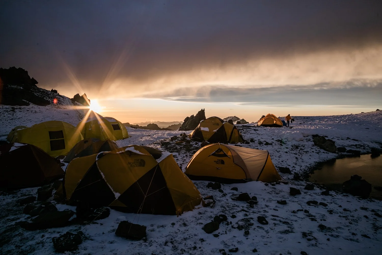 Nocleh ve stanech v Confluence Camp (nadmořská výška 3 400 m).